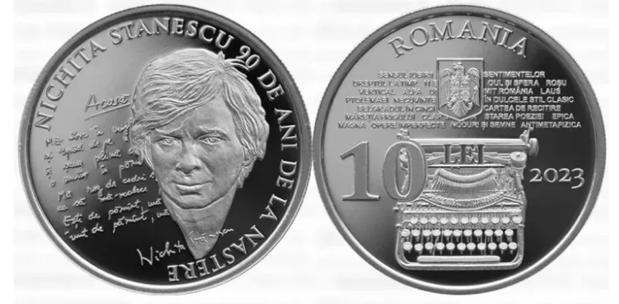 Moment istoric în România. Luni, 24 aprilie 2023, BNR lansează în circuitul numismatic o monedă de argint cu înfățișarea lui Nichita Stănescu. Evenimentul marchează împlinirea a 90 de ani de la nașterea marelui poet.