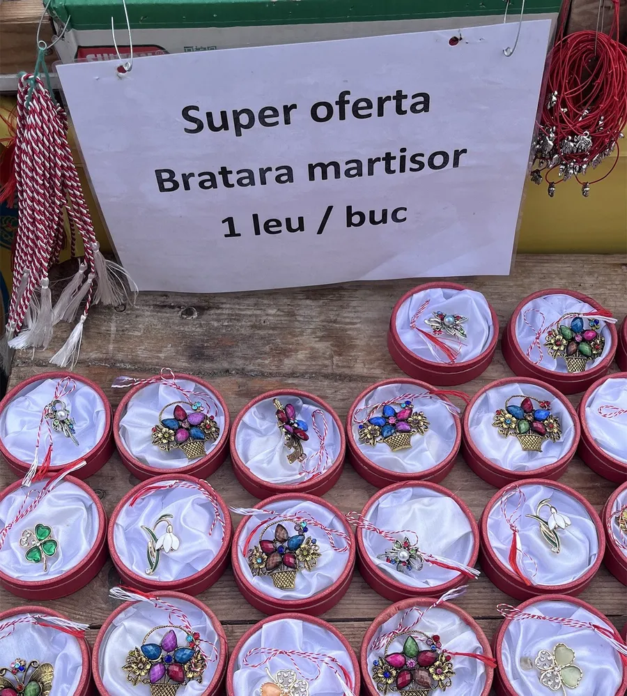 Primăvara vine cu mărțișoare și super oferte! Un comerciant din Piața Rahova a luat prin surprindere cu prețurile sale la mărțișoare. Cu câți lei se vinde un singur mărțișor?
