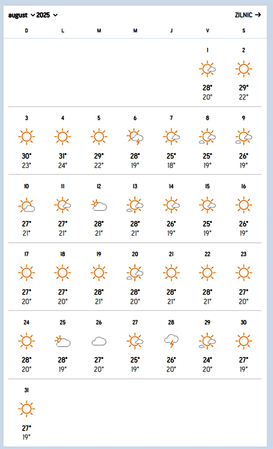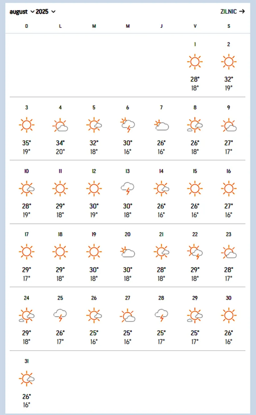Prognoza meteo pentru luna august, în București/ Sursa foto: Accuweather