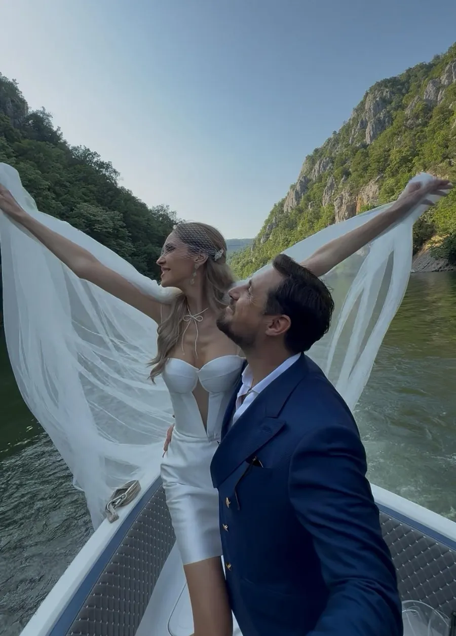 Momentul-cheie l-a constituit însă plimbarea cu barca, pe Dunăre. Cu Ana și Daniel îmbrăcați în costumele de la cununia civilă. Și, în fața impunătoarei statui a lui Decebal, cei doi și-au reînnoit jurămintele. A fost ca un fel de reîntoarcere simbolică la începutul poveștii lor, într-un decor de vis.