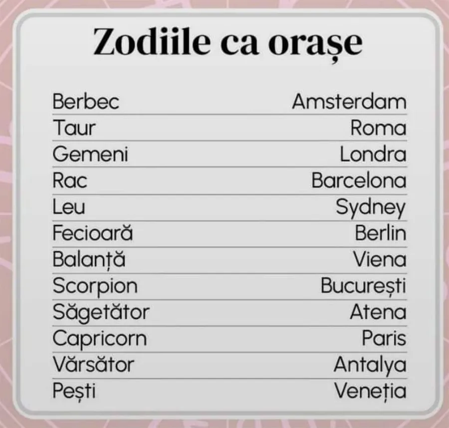 Iată, mai jos, lista zodiilor și orașele potrivite în care ar trebui să locuiască, pentru o viață mult mai liniștită și împlinită.