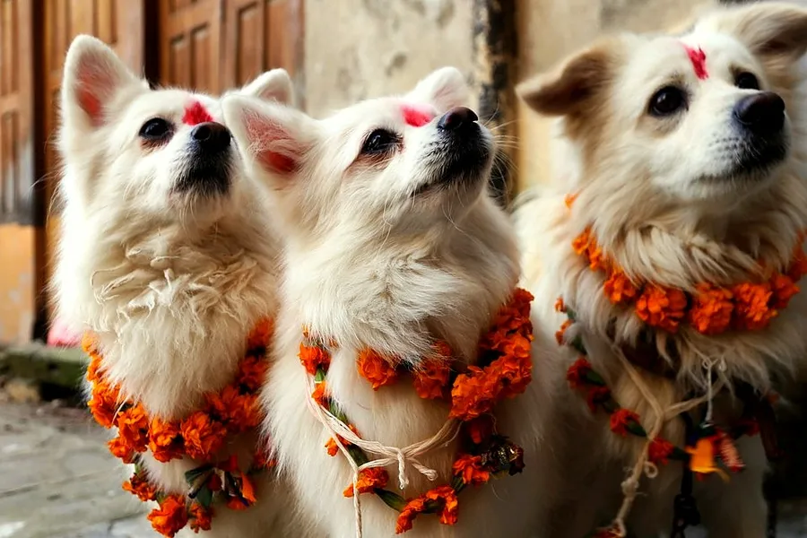 Festivalul pentru ziua câinilor este al doilea ca mărime din Nepal și are o durată de 5 zile. Turiștii care ajung în țară nu înțeleg, de multe ori, de ce văd câini împodobiți cu ghirlande de gălbenele și tika (decorațiune specifică popoarelor budiste, n.r.) roșii pe frunte.