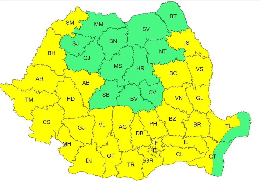 Deși cea mai călduroasă zi din această vară se va înregistra la final de săptămână, nici acum situația nu este una prea încurajatoare. Astăzi, 8 iulie, Administrația Națională de Meteorologie a emis o avertizare cod galben de caniculă și disconfort termic. Astfel, 25 de județe din ţară sunt deja sub cod galben de căldură, iar marți avertizarea meteo se extinde la 29 de județe.