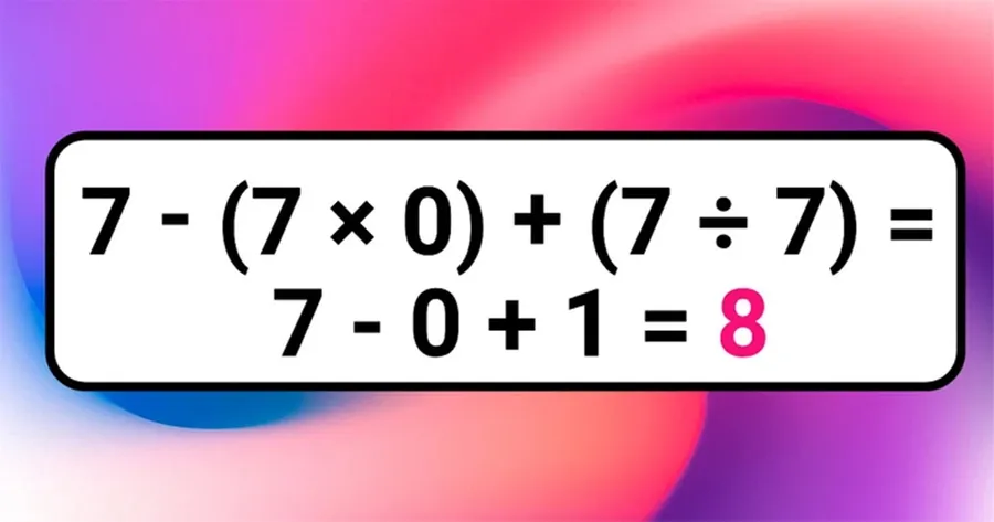Test de inteligență: Rezolvați 7 – 7 x 0 + 7 : 7 = ?