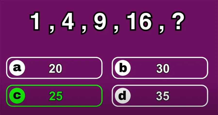 Test de inteligență | Ce număr urmează în seria: 1, 4, 9, 16?