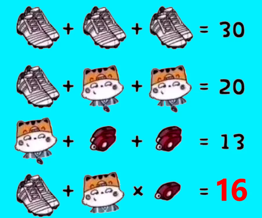 Testul pe care îl propunem astăzi, poate să pară la prima vedere unul simplu, având în vedere că se supune atenției o problemă matematică pe care mulți elevi pot să o rezolve imediat. Însă, nu vă lăsați păcăliți și nu uitați că pe lângă cunoștințele de matematică mai este nevoie și de puțină atenție pentru a ajunge la răspunsul corect. Așadar, se supun atenției trei ecuații cu mai multe necunoscute. Tot ce trebuie să faceți este să aflați răspunsul corect pentru cea de-a patra ecuație.