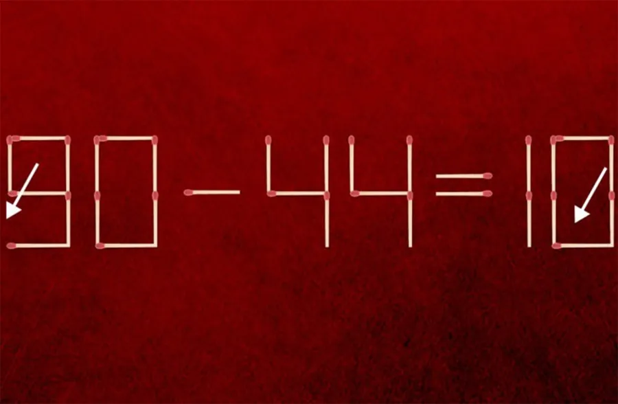 Test de inteligență | Corectați 90 – 44 = 10, mutând doar două chibrituri