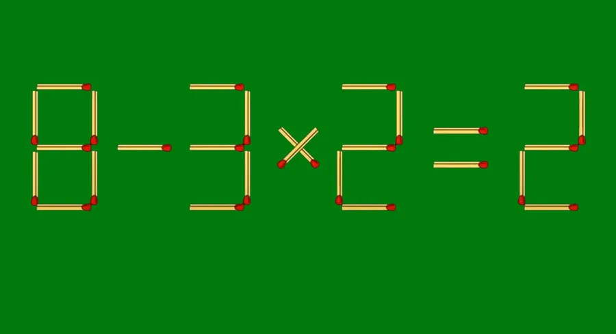 Pentru a nu te mai ține în suspans, te anunțăm că răspunsul corect era în felul următor: Trebuia să iei un băț de chibrit de la semnul + și să îl muți la cifra 9, pentru a avea 8. Astfel, ecuație devine: 8-3 x 2=2. Potrivit ordinii efectuării operațiilor, avem: