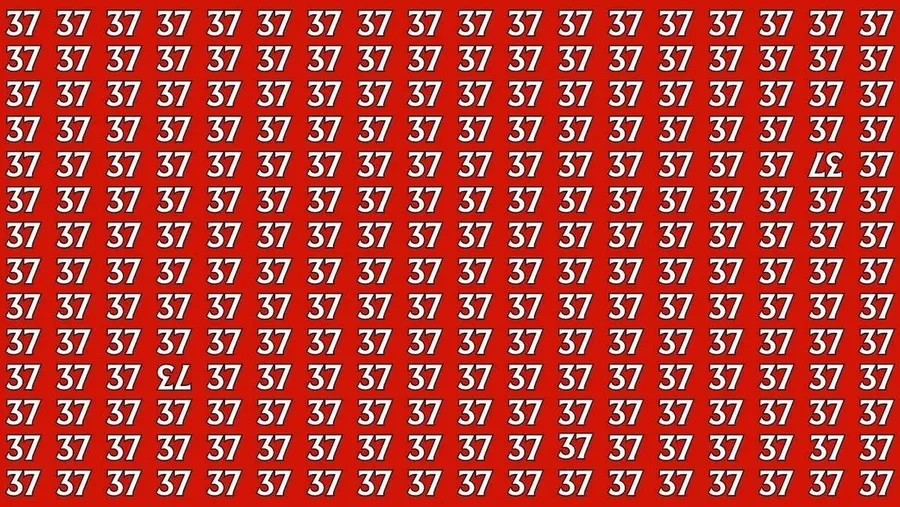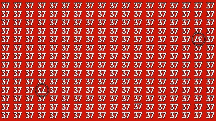 Imaginea reprezintă o succesiune repetitivă a numărului „37”, într-un format tip grilă. Provocarea constă în a descoperi un „37” inversat și un „73” ascuns printre repetiții. Vei avea nevoie de multă atenție pentru a găsi răspunsul corect. Se spune că doar 1% dintre oameni reușesc să le identifice în primele 7 secunde, fiind nevoie de „ochi de vultur” și multă concentrare.