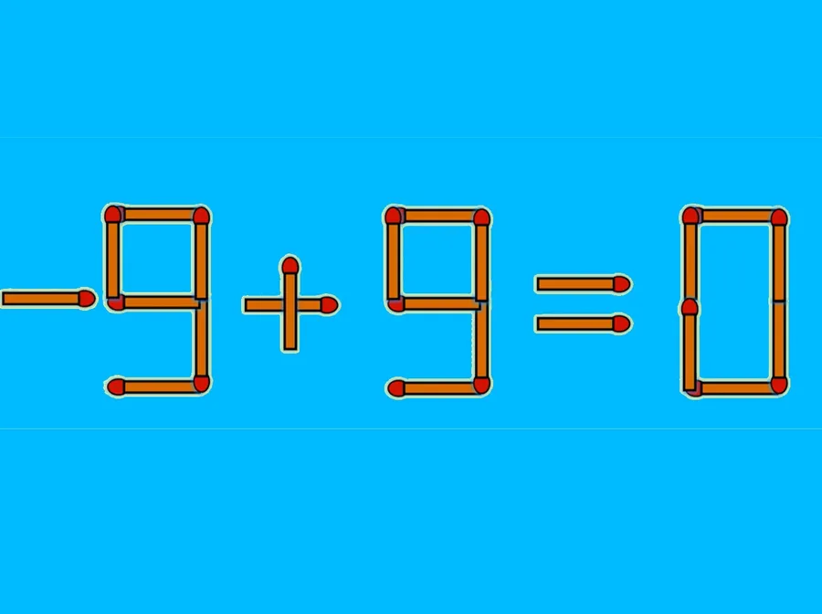 REZOLVARE: Pentru a corecta ecuația trebuie să muți un singur băț de chibrit vertical de la cifra 8 (astfel încât să devină 9), apoi să îl pui în fața lui (astfel încât să devină -9). Ecuația finală și corectă este: -9+9=0.