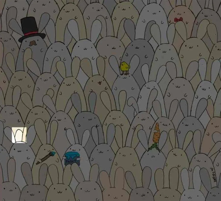 Test de logică | Doar 2 dintre 100 de oameni pot vedea oul de Paște ascuns printre iepurașii din imagine