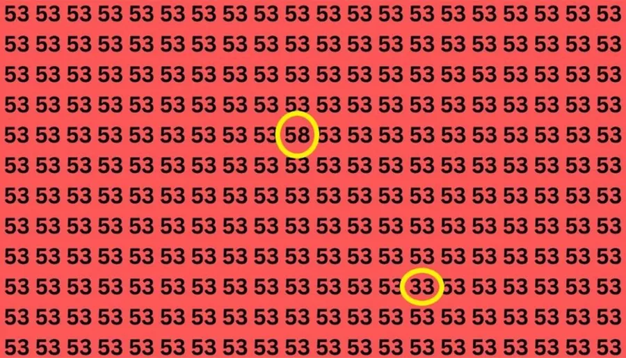 Așadar, testul propus astăzi este unul destul de greu de deslușit, cel puțin într-un timp scurt. Iar pentru a o face trebuie să te concentrezi bine și să ai claritate vizuală. În imaginea prezentată, printre multitudinea de numere „53” stau ascunse destul de bine două numere diferite. Tot ce trebuie să faci este să îți dai seama unde sunt poziționate acestea. Și timpul în care trebuie rezolvată provocarea este de 7 secunde. Se pare că doar geniile reușesc să ofere răspunsul în doar câteva secunde.