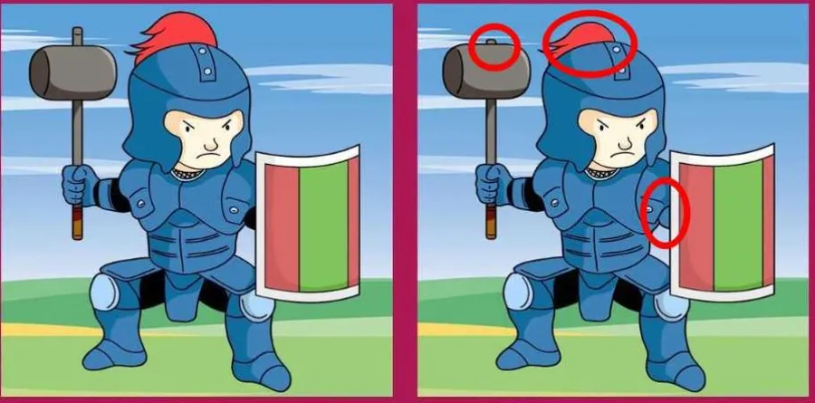 Nu vă mai ținem în suspans și vă spunem noi care sunt cele trei diferențe: părul nu arată la fel, lângă scut putem observa o altă diferență, dar și la armă! Noi am atașat în cadrul acestui articol, mai jos, o imagine unde sunt evidențiate zonele respective, iar așa îți va fi mult mai ușor să îți dai seama despre ce este vorba.