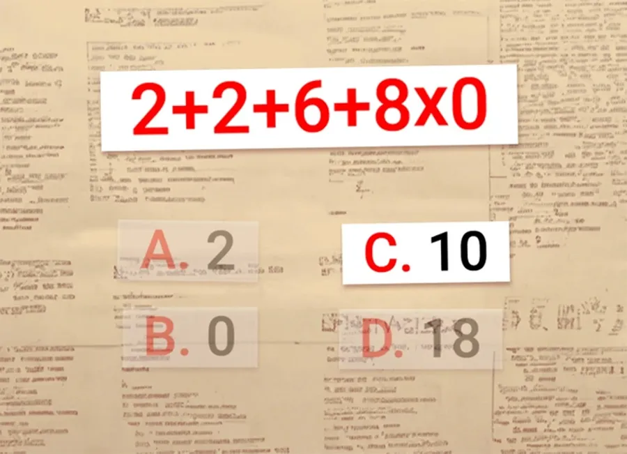 Test IQ | Calculați în cap: 2 + 2 + 6 + 8 x 0 = ?