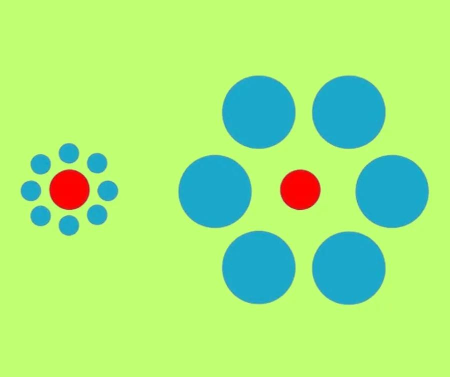 În imaginea de mai jos, puteți observa mai multe cercuri albastre și două roșii. Trebuie să urmăriți cu atenție și să încercați să identificați care punct este mai mare. Acestea sunt așezate la o anumită distanță unul față de celălalt.