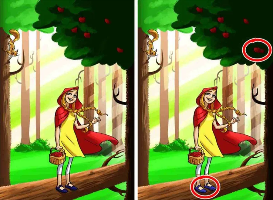 Felicitări, dacă ați reușit să observați cele două diferențe. Iar dacă încă nu ați găsit răspunsul sau sunteți confuz în legătură cu acesta, aruncați un ochi în dreapta imaginii și în partea de jos a acesteia. Numărul de mere din extrema dreaptă și culoarea pantofilor fetei sunt diferențele.