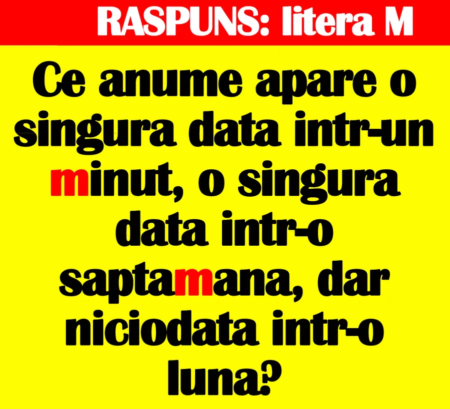 REZOLVARE: Litera M – apare o singură dată într-un minut, o singură dată într-o săptămână și niciodată într-un an.