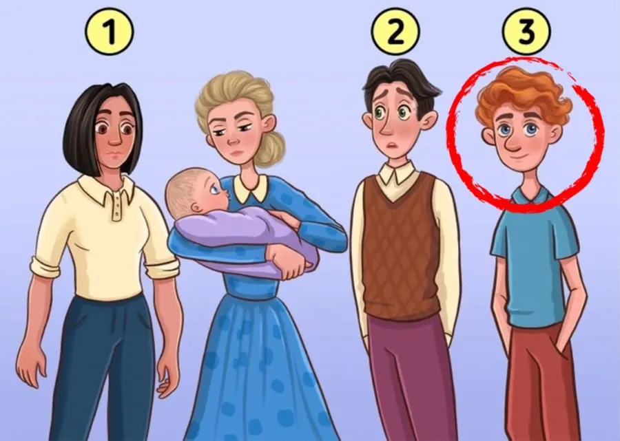 Testul de astăzi poate să pară la prima vedere unul simplu, însă nu este. Privește imaginea: o femeie ține în brațe un bebeluș, iar alți trei adulți stau în apropiere. Unul dintre ei este tatăl copilului. Poți să-ți dai seama cine e? Ai doar 5 secunde, nu te gândi prea mult! E vorba de intuiție și de ceea ce observi la prima vedere. Uită-te la expresia bebelușului, la felul în care îi privește pe ceilalți, la eventuale asemănări fizice sau mici detalii emoționale. Chiar și ceva aparent nesemnificativ, cum ar fi culoarea părului, poate fi un indiciu. Cine crezi că e tatăl? Primul, al doilea sau al treilea? Alege pe cineva instinctiv, fără să analizezi prea mult!