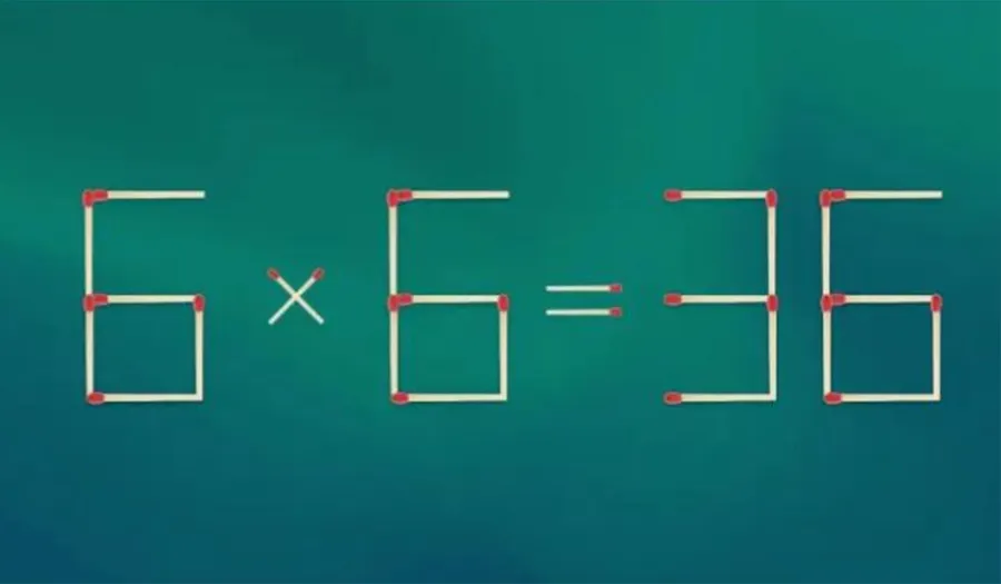 REZOLVARE: Ecuația 6 x 8 =96 este formată din 29 de chibrituri. Pentru a corecta rezultatul trebuie să elimini chibritul vertical din dreapta sus de la cifra 8, ceea ce îl va transforma în 6. Apoi, scoateți chibritul vertical din stânga sus de la numărul 9 (96), de unde va rezulta cifra 3, adică 36. Astfel, ecuația corectă devine: 6 x 6 = 36.