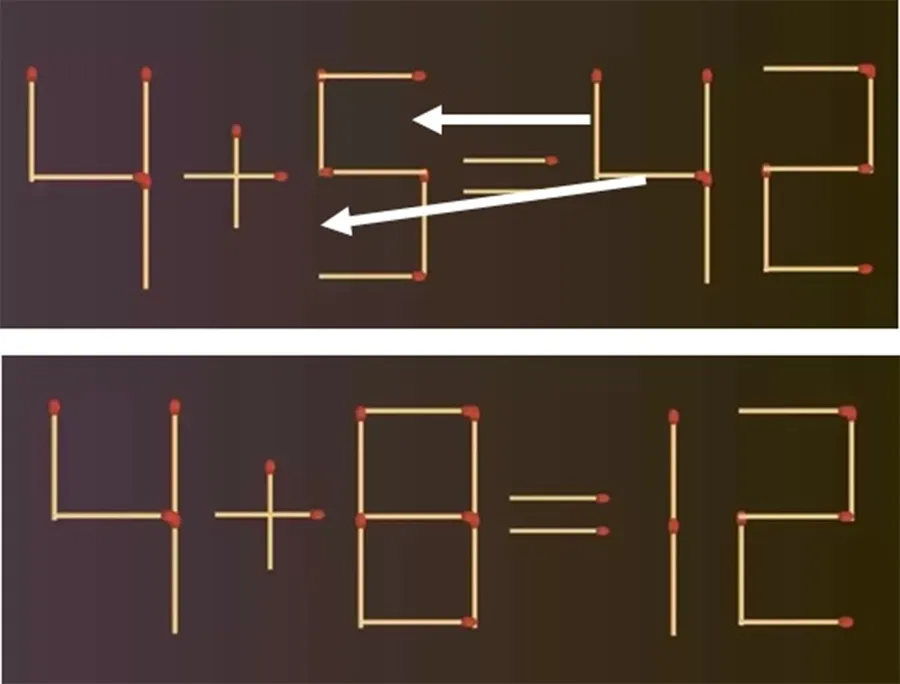 Puzzle-urile cu chibrituri presupun o analiză atentă a ecuației pentru a identifica ce anume nu este în regulă. În general, puzzle-ul îți va spune câte bețe de chibrit să muți, să adaugi sau să elimini pentru a corecta ecuația. În cazul acesta, trebuie să muti doar 2 bețe de chibrit pentru a obține o ecuație corectă, deoarece, evident, 4 + 5 nu este egal cu 42.