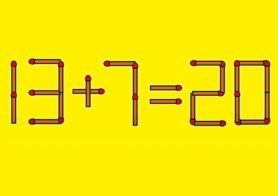 REZOLVARE: Pentru a corecta ecuația de mai sus, tot ce trebuie să faci este să muți un băț de chibrit orizontal de la cifra 9 (astfel încât 9 să devină 3) și să îl adaugi la peste semul – (astfel încât – să devină +). Ecuația corectă devine: 13 + 7 = 20.