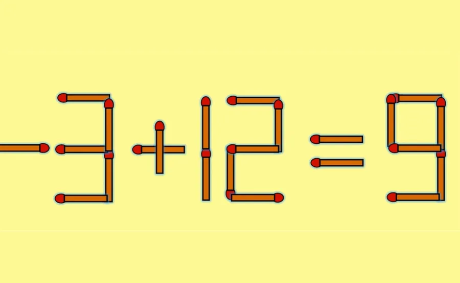 REZOLVARE: Ecuația 3 + 12 = 8 este greșită. Pentru a o corecta, trebuie să muți un băț de chibrit vertical de la cifra 8, astfel încât să devină 9 și să îl adaugi ca în fața la cifra 3. Prin urmare, ecuația corectă devine – 3 + 12 = 9.