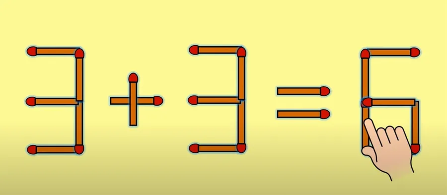 Test IQ cu chibrituri | Mutați un singur băț, pentru a corecta 3 + 3 = 6