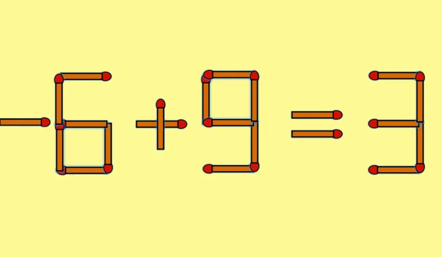 Suntem de acord cu toții că 6 + 9 = 9 este o ecuație greșită. Pentru a o corecta trebuie să muți un băț de chibrit vertical de la cifra 9 (de la rezultatul ecuației) astfel încât să devină 3, apoi să îl muți la începutul ecuației. Prin urmare, ecuația corectă devine – 6 + 9 = 3.