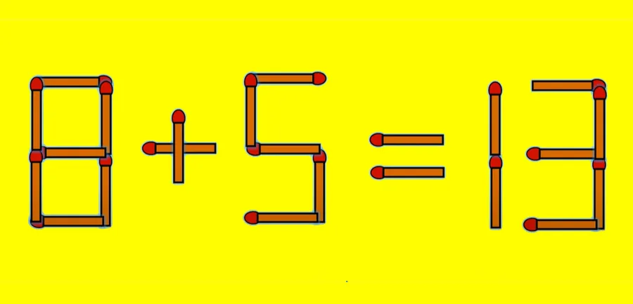 Nu vă mai ținem prea mult timp în suspans și vă spunem că răspunsul corect este 8 + 5 = 13, iar cheia rezolvării stă în transformarea cifrei 15 în 13. Tu ai reușit să îți dai seama cum trebuie să procedezi fără ajutor? Dar prietenii tăi? Noi am atașat în cadrul acestui articol, mai jos, o imagine unde se poate vedea clar care este ecuația corectă. Așa vei vedea mai bine despre ce este vorba!