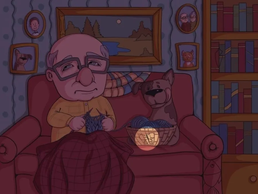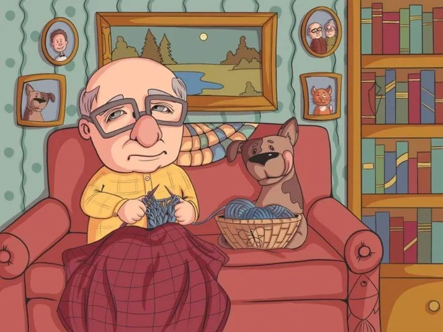 Privește cu atenție această scenă liniștită dintr-un living confortabil. Un bătrânel stă relaxat pe canapea, tricotând, în timp ce câinele său credincios se odihnește lângă el. Dar stai—undeva în imagine se ascunde un fluture perfect camuflat! Doar cei cu un simț al observației de elită îl pot repera în mai puțin de cinci secunde.