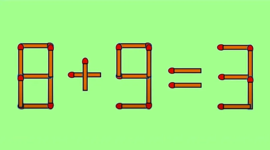 Testul de astăzi pare la prima vedere unul simplu, cu o operație matematică de clasele primare, însă, nu e chiar așa. În esență, tot ce trebuie să faci este să muți un singur băț de chibrit pentru a corecta egalitatea 8+9=3.