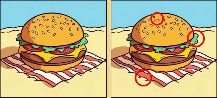 Provocarea propusă este un puzzle de tip „găsește diferențele”, în care trebuie să identifici trei elemente diferite între două imagini aproape identice în doar 45 de secunde. Pentru a reuși, este important să compari imaginile metodic, să analizezi fiecare detaliu și să fii atent la elemente lipsă, modificate sau rearanjate. Privește cu atenție burgerul din imagini și încearcă să descoperi ce nu se potrivește.