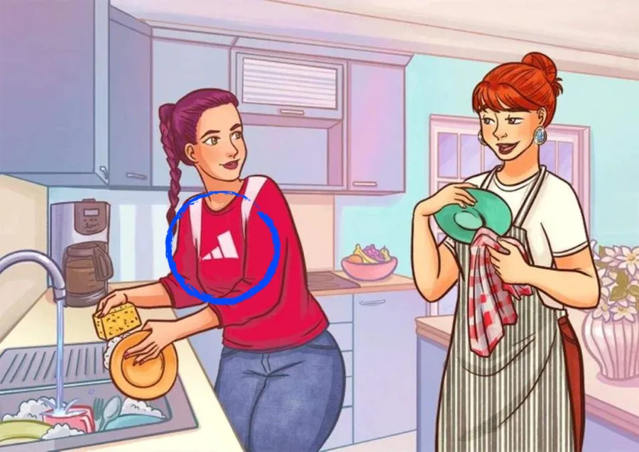 Rezolvare: Nu vă mai ținem în suspans și vă spunem răspunsul corect. Uitați-vă atent la bluza roșie a fetei: semnul Adidas este fake, astfel nu este ea cea bogată. Am atașat în cadrul acestui articol, mai jos, o imagine unde am scos în evidență răspunsul corect.