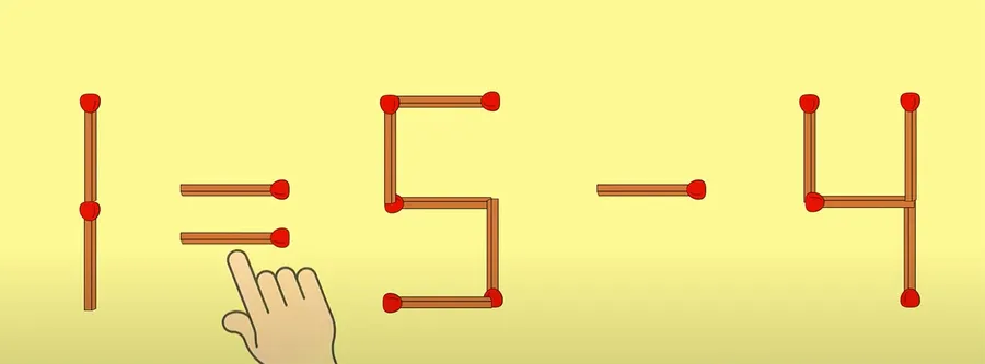 Testul de astăzi pare la prima vedere unul simplu, cu o operație matematică de clasele primare, însă, reușește să le pună bețe în roate multora. În esență, tot ce trebuie să faci este să muți un singur băț de chibrit, pentru a corecta egalitatea 1-5=4.