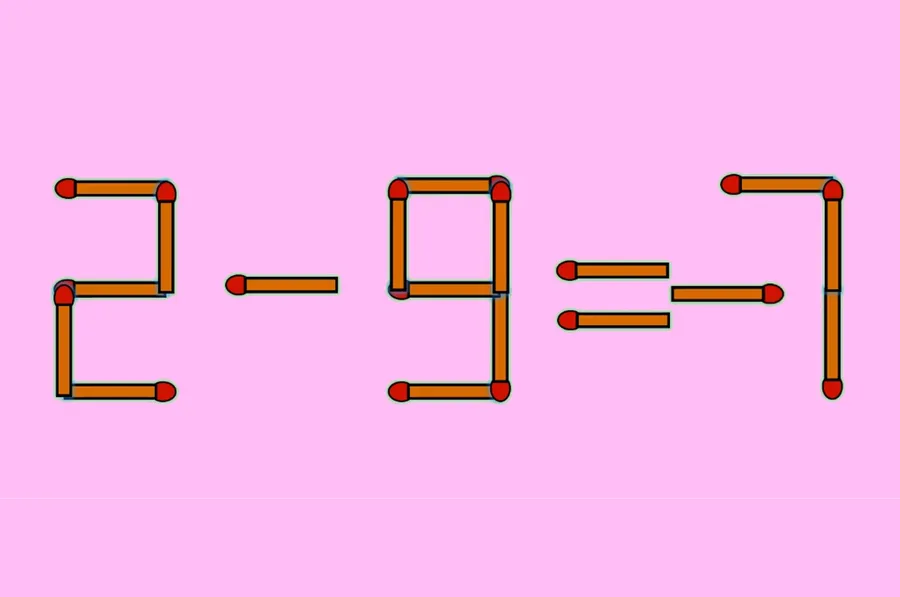 Pentru a corecta egalitatea, tot ce trebuie să faci este să iei bățul de chibrit așezat vertical din componența semnului + și să îl muți după egal, în fața cifrei 7. Astfel, egalitatea devine corectă: 2 – 9 = – 7.