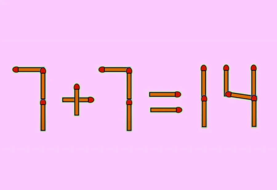 În imagine este prezentat un exercițiu clasic de logică cu bețe de chibrituri, care pune la încercare atenția și capacitatea de analiză. Sarcina pare simplă la prima vedere. Ttrebuie mutat un singur băţ pentru ca ecuația să devină corectă, în loc de 7+7 = 111. Totuși, exercițiul necesită concentrare și gândire critică, deoarece fiecare mișcare poate schimba complet rezultatul.