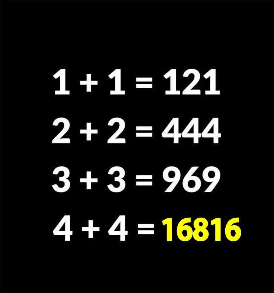 Test IQ: Rezolvați 4+4, dacă 1+1=121, 2+2=444 și 3+3=969
