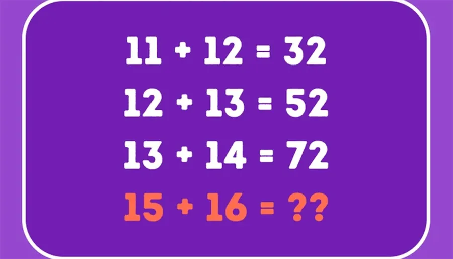 Test IQ exclusiv pentru genii | Dacă 11+12=32, 12+13=52 și 13+14=72, cât este 15+16=?
