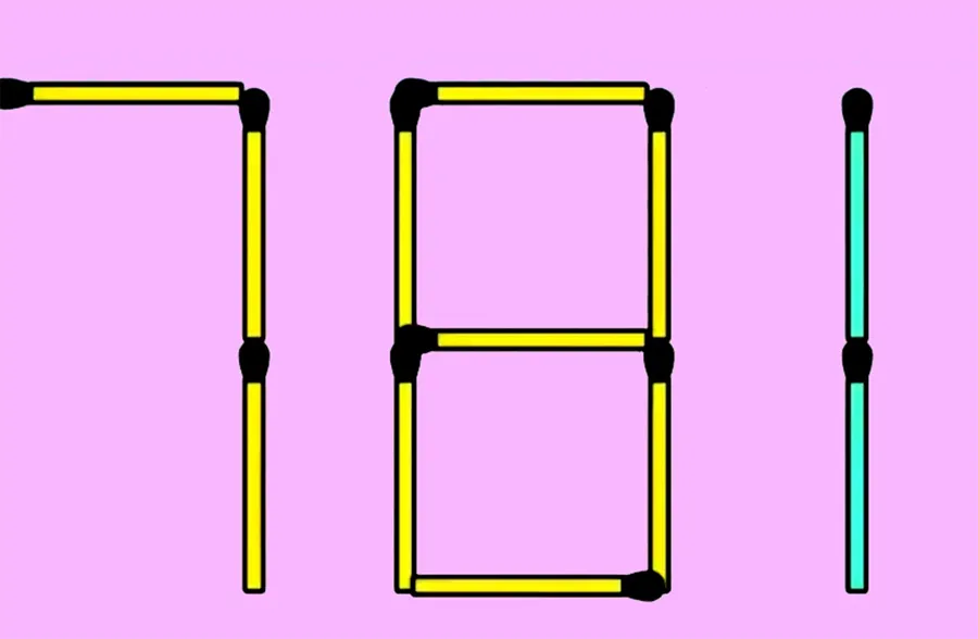 Mai exact, pentru a obține cel mai mare număr posibil trebuie să luați două bețe din componența cifrei trei. Este vorba despre cele două bețe așezată orizontal, în partea de jos. Aceste două bețe le transformați în cifra 1, pe care o așezați în dreapta cifrei opt. Astfel, în loc de numărul 38 se va forma numărul 781, care este cel mai mare număr pe care îl puteți obține în acest puzzle.