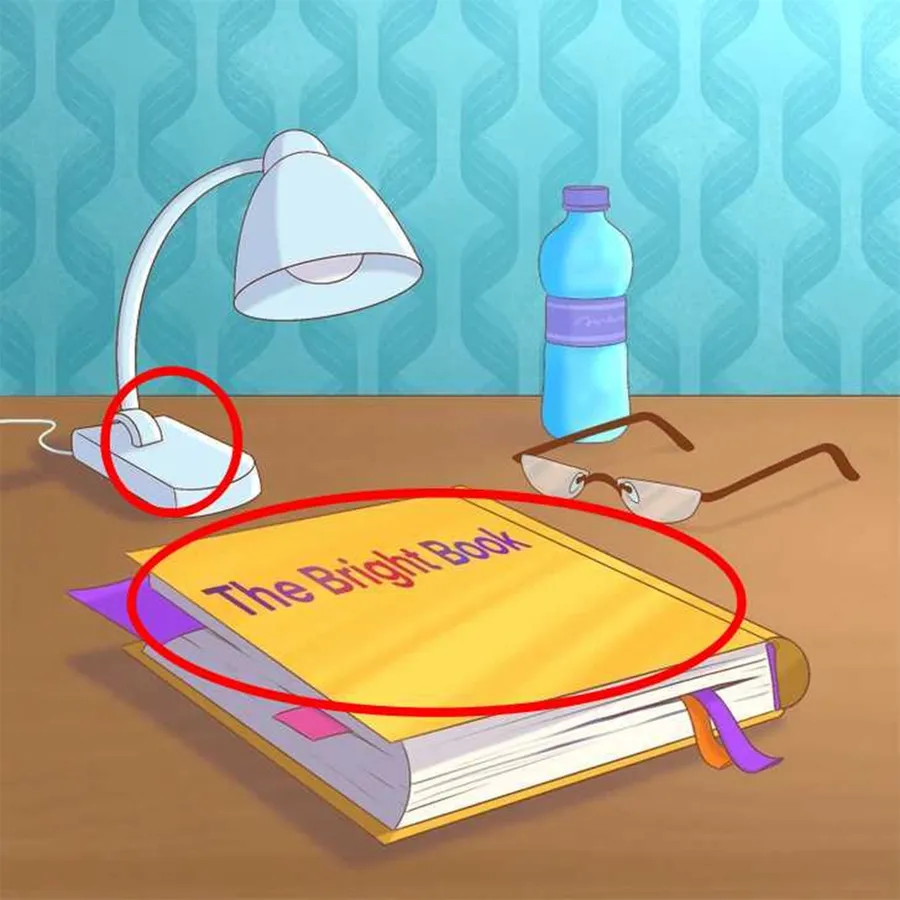 REZOLVARE: Lampa nu are întrerupător, iar titlul cărții și semnele de carte sunt plasate cu susul în jos.