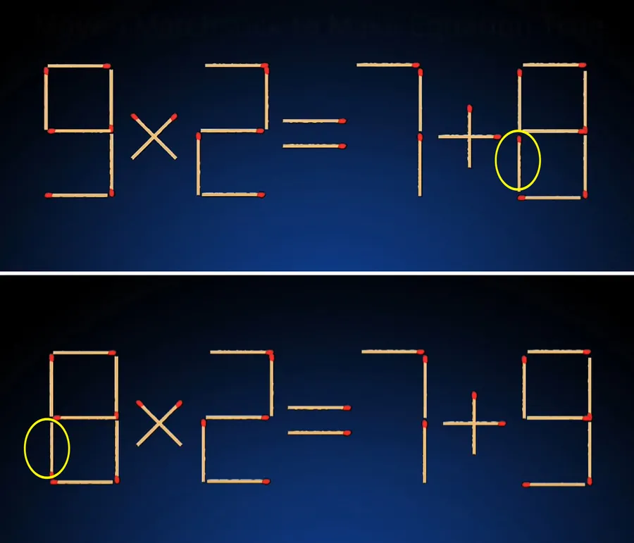Test IQ exclusiv pentru genii | Mutați un singur chibrit pentru a corecta 9×2=7+8