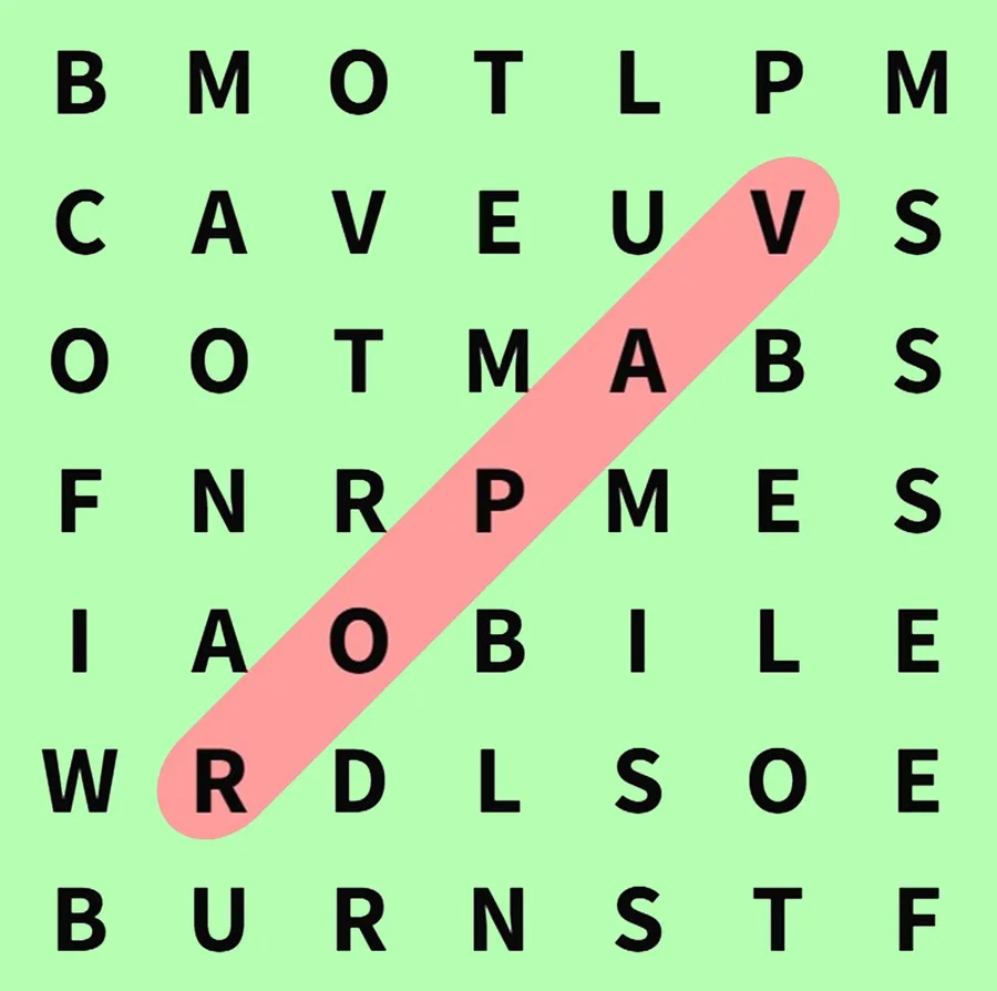Așa cum am menționat mai sus, este menit să vă antreneze mintea și aveți nevoie de o putere mare de concentrare. Ei bine, cuvântul „vapor” se află pe diagonală, începând de la litera „v” de pe al doilea rând spre litera „r”, de pe al șaselea rând. Priviți imaginea pentru a înțelege mai bine!