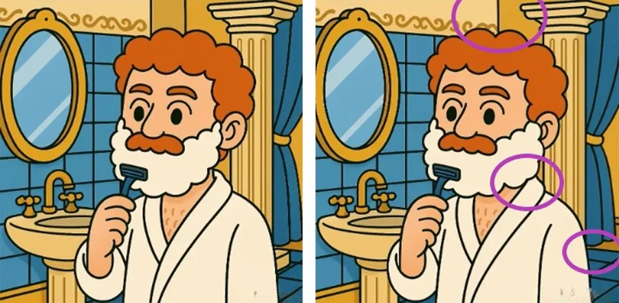 TEST IQ | Identificați toate cele 3 diferențe dintre acești doi bărbați care se bărbieresc