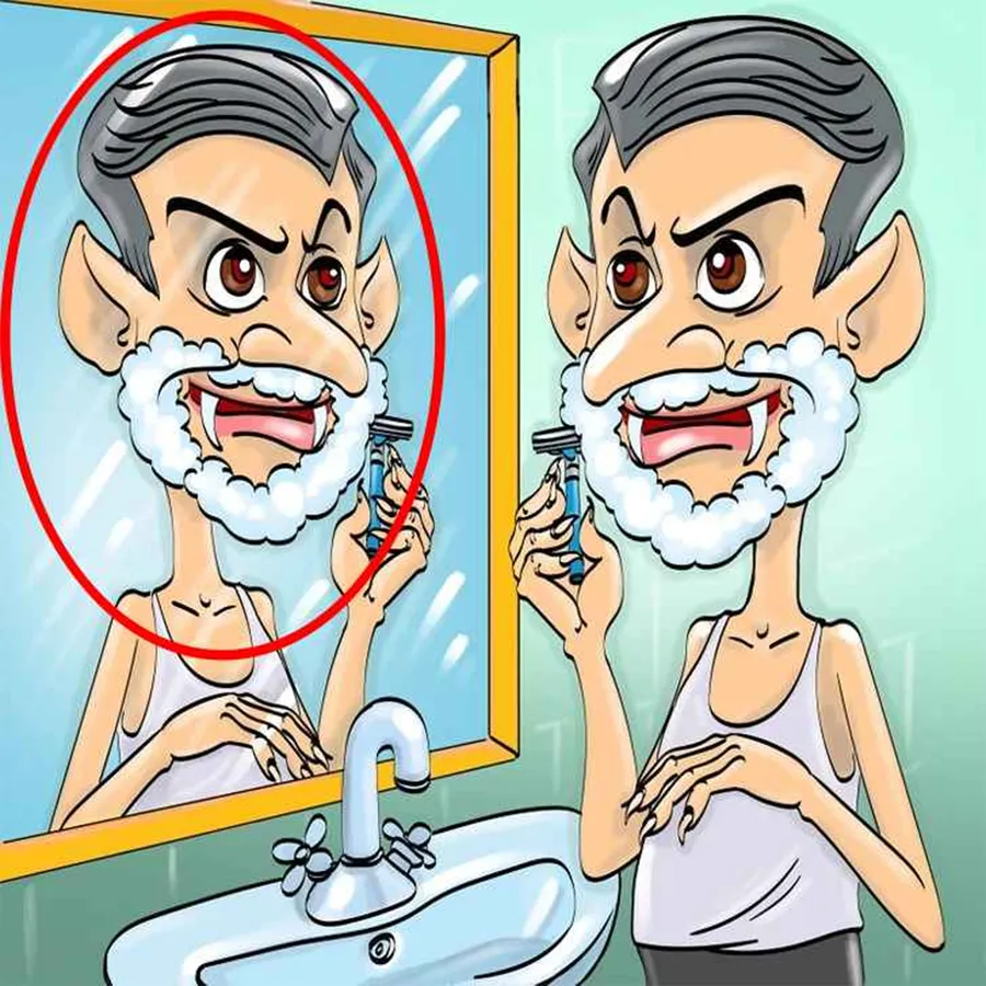 În imaginea împărtășită mai sus, un vampir poate fi văzut bărbierindu-se în fața unei oglinzi. Există o greșeală în această fotografie, iar provocarea cititorilor este să o depisteze în 6 secunde. Acest puzzle va fi testul suprem al atenției tale la detalii.