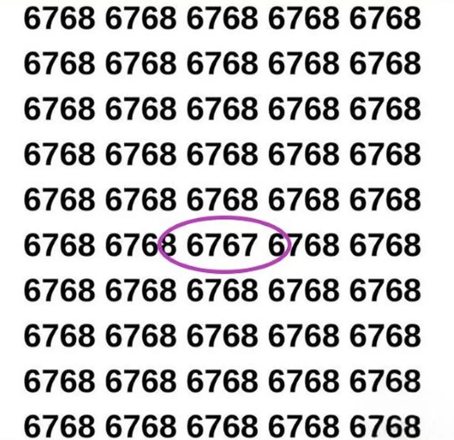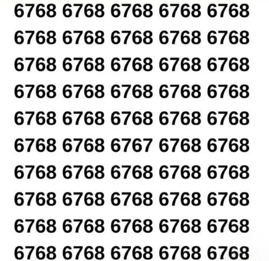 Crezi că ai un ochi ager pentru astfel de provocări? Iată un test care dă bătăi de cap multora: găsește numărul ascuns 6767! În imagine este scris numărul 6768, însă undeva printre cifre se ascunde și 6767. Provocarea este să îl descoperi în mai puțin de 3 secunde. Pare simplu, dar atenția ta la detalii va fi pusă serios la încercare!