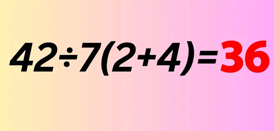 REZOLVARE: Cum am obținut răspunsul corect al ecuației 42:7(2+4)? Prima dată se efectuează ecuațiile din paranteză: 2+4 = 6, apoi ecuația devine 42:7×6. Înmulțirea și împărțirea au acceași prioritate și se rezolvă de la stânga la dreaptă. 42:7 = 6 și 6×6= 36. Răspunsul final este 36.