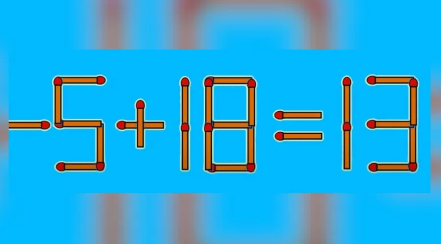 Rezolvare: Așadar, 6 + 18 = 13 este greșit, iar pentru a corecta egalitatea trebuie să mutați bățul de chibrit așezat vertical, cel care formează cifra 6, în poziție orizontală înainte de primul număr. Astfel, veți obține -5 + 18 = 13. Iată ecuația corectă!
