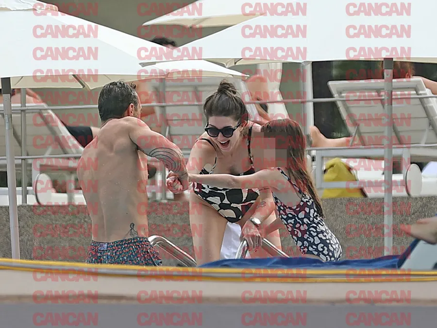Ca doi adolescenți îndrăgostiți, Vladimir și Alice au zâmbit nonstop, iar actorul făcea glume pe seama soției pe care ar fi vrut s-o arunce în apă. Ceea ce vedem mai sus nu este tabloul complet de familie însă, căci fiica cea mică, Alegra, se afla în cărucior. În timp ce Zora și-a ținut clipă de clipă părinții în priză, mezina familiei a dormit minute bune, la piscină.