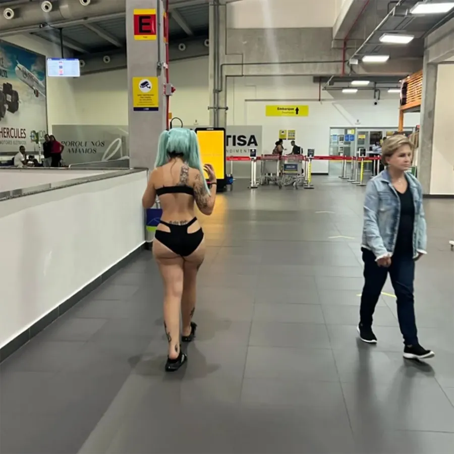 O tânără din Brazilia nu a fost lăsată să urce la bordul unei aeronave din cauza ținutei ei. Aceasta purta doar o pereche de bikini și o perucă albastră. Vedeta, cunoscută pe rețelele de socializare, drept Kine-Chan a fost criticată aspru pe internet după ce s-a plimbat aproape dezbrăcată printr-un aeroport.