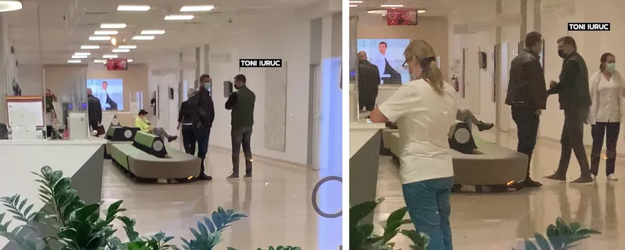 Însoțit de alte două persoane, îndeplinind toate normele impuse de autorități, Toni Iuruc a intrat în clinica privată în care mama lui e internată. Din imagini se poate observa că soțul jucătoarei de tenis era destul de agitat, semn că încă nu aflase vești despre mama sa. S-a plimbat agitat pe holuri, s-a așezat pe o banchetă și a avut noroc cu persoanele care-l însoțeau, că au mai reușit să-l scoată din starea respectivă.
